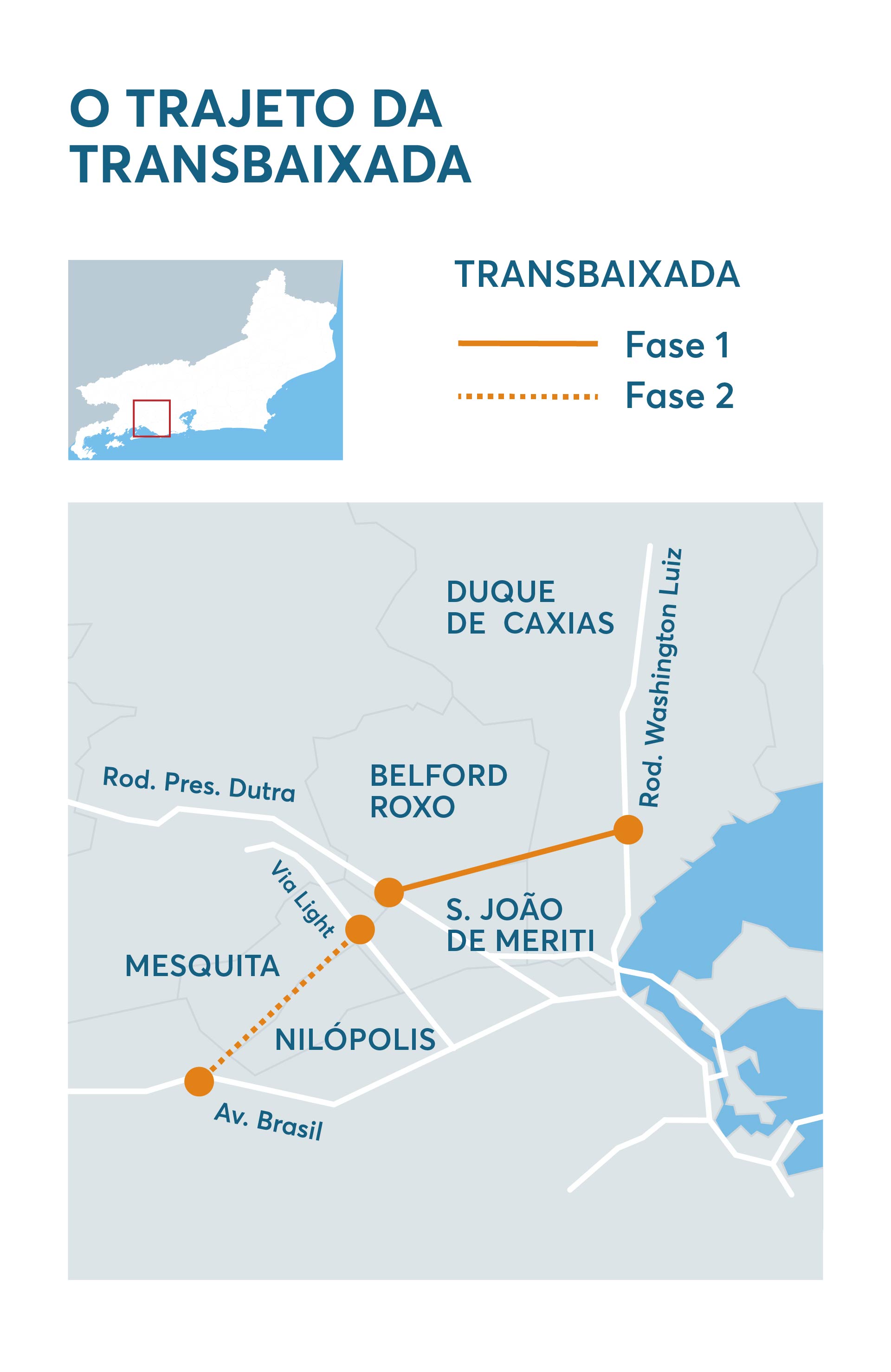 A Transbaixada ligará a BR-040 à Avenida Brasil, cruzando a Via Light (RJ-081). Ela passará por Duque de Caxias, Belford Roxo, Mesquita e Nilópolis. A primeira fase ligará a BR-040 até a Via Light; e a segunda irá da Via Light até a Av. Brasil. As obras ainda não foram iniciadas e nem há previsão.