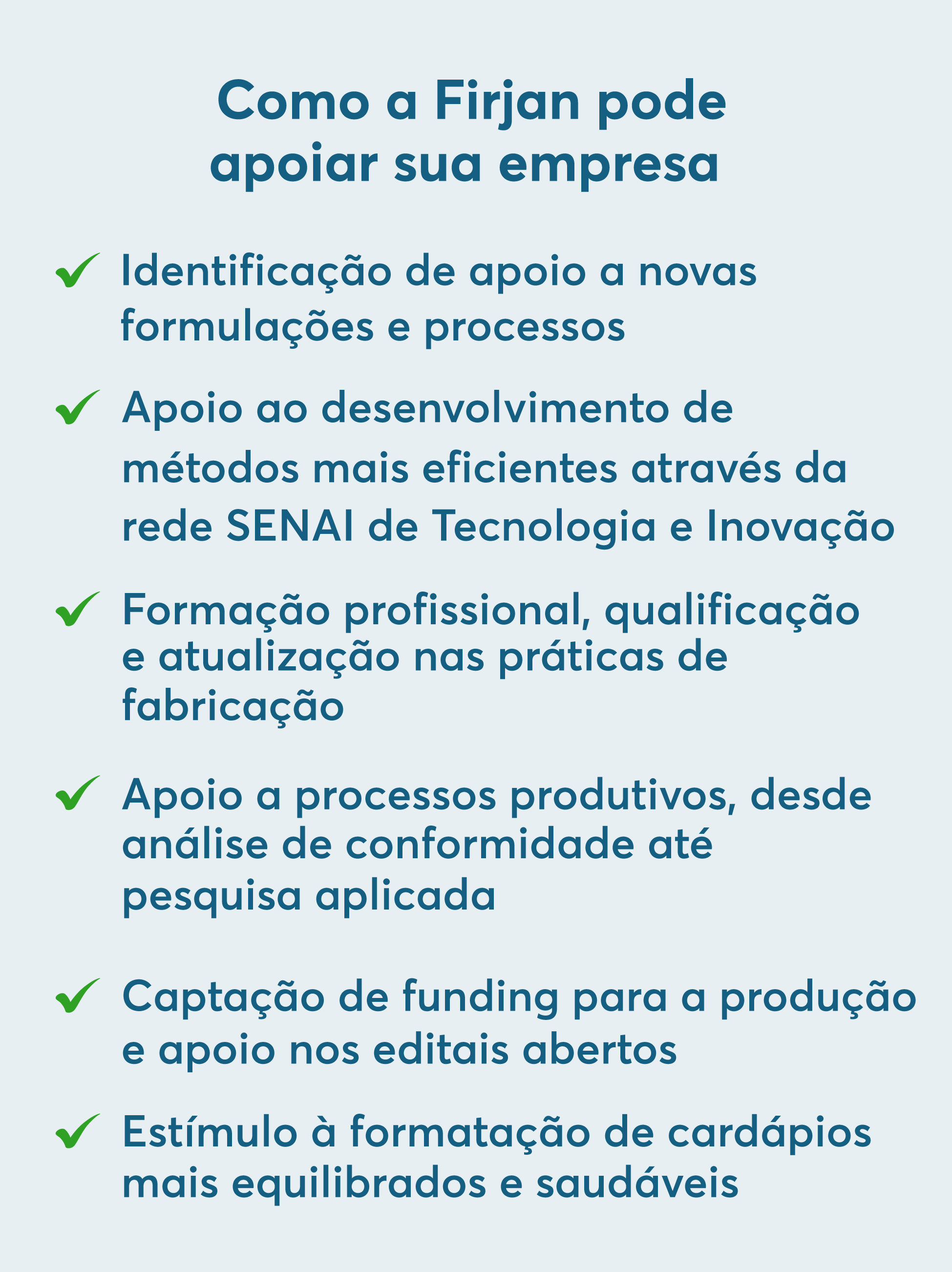 A Firjan tem uma estrutura de captação de funding para a produção, apoiando os projetos a serem submetidos aos editais. “Fazemos uma atuação técnica e processual, aliada às melhores práticas. Apresentamos os editais de inovação abertos, com destaque para os que contemplam práticas alinhadas aos critérios ESG (ambientais, sociais e de governança), à sustentabilidade e à matriz da alimentação saudável", explica Carlos Magno, gerente geral de Negócios da Firjan SENAI SESI.