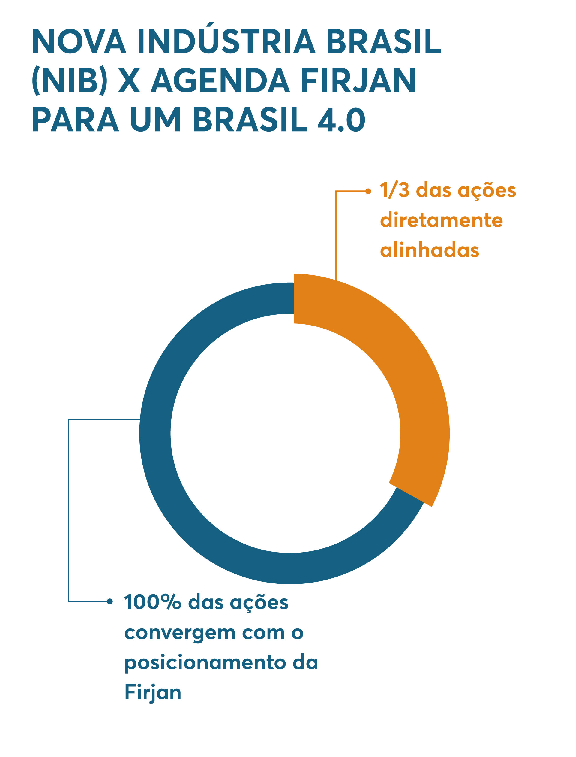 Das 90 ações previstas no programa Nova Indústria Brasil (NIB), cerca de um terço (31) estão alinhadas com as propostas da Agenda Firjan para um Brasil 4.0, que reúne sugestões para o desenvolvimento econômico do Rio de Janeiro e do país, encaminhadas aos governos federal e estadual. O programa do governo, inclusive, será tema de um seminário em 23/05, no Centro de Convenções da Firjan, durante a programação do Dia da Indústria.